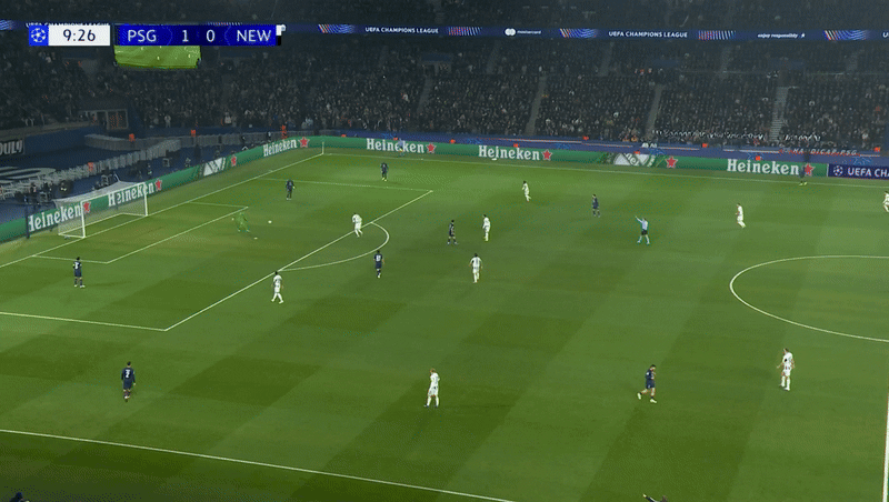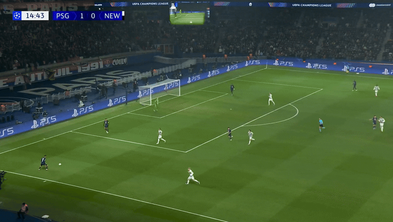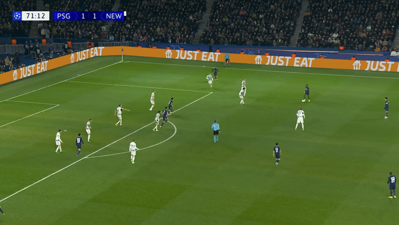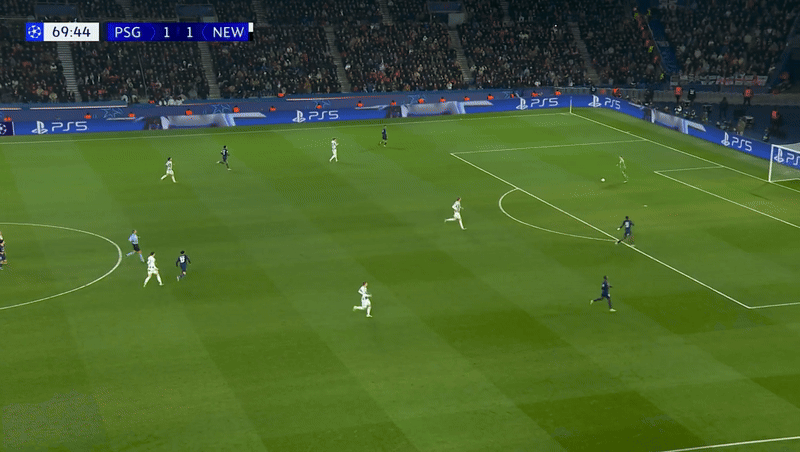 뉴캐슬의 성공적인 압박으로 PSG는 점유권을 넘겨주게 된다.