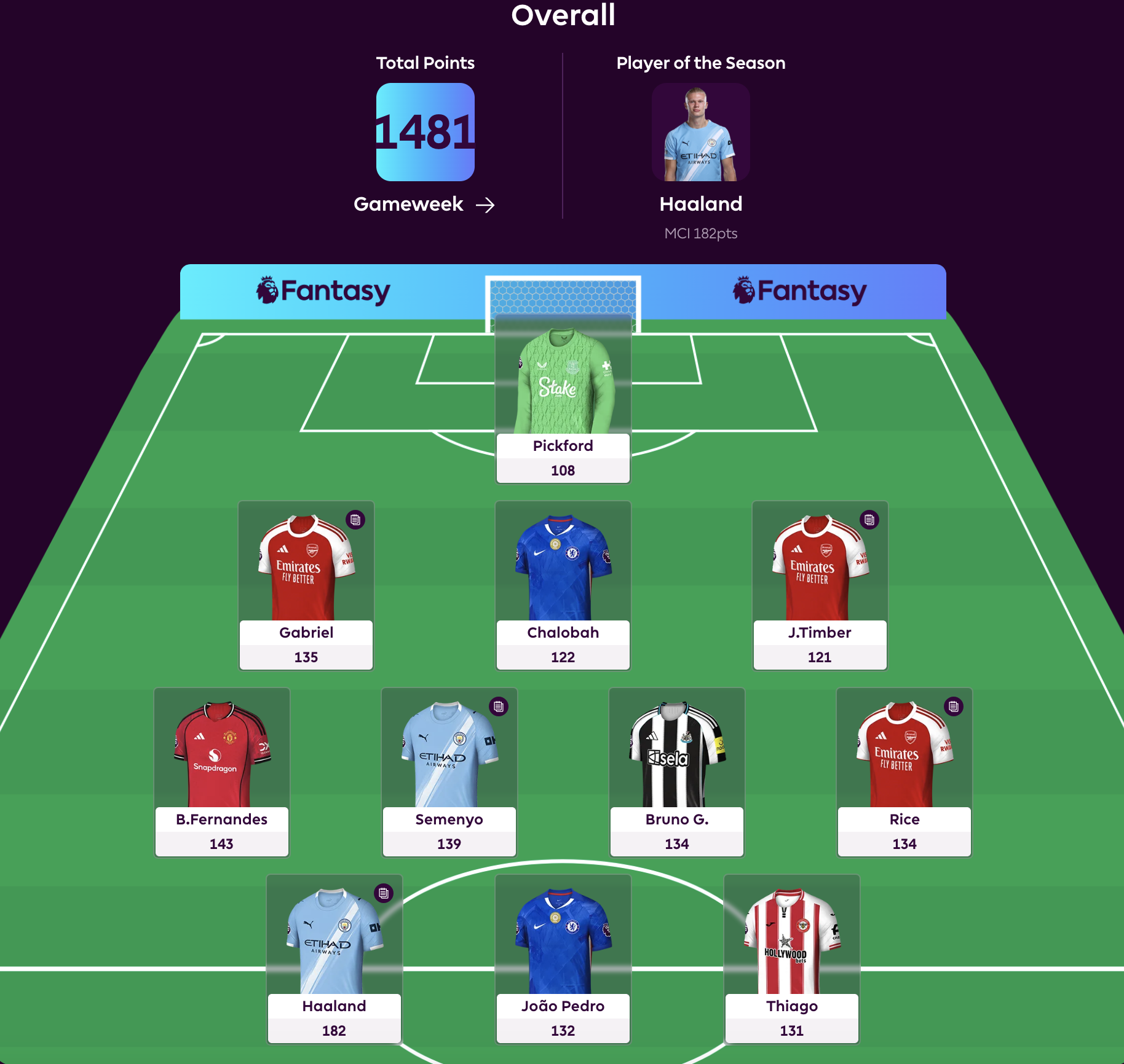 Team of the Season 과 뉴캐슬 선수들의 점수 순위표 공유드립니다. FPL 시즌 베스트 일레븐에 드는 성적인 브루노를 제외하면 다들 FPL 점수로는 살짝 아쉽네요. 그나마 어제 토트넘 경기에서 1골, DEFCON 으로 11점을 따낸 (그리고 제 팀을 살려준) 챠우가 눈에 띕니다!